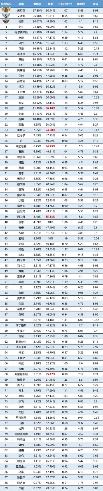 一周英雄榜单 |高分段迎新人:杨戬进入登场率TOP5,哪吒进入胜率TOP5