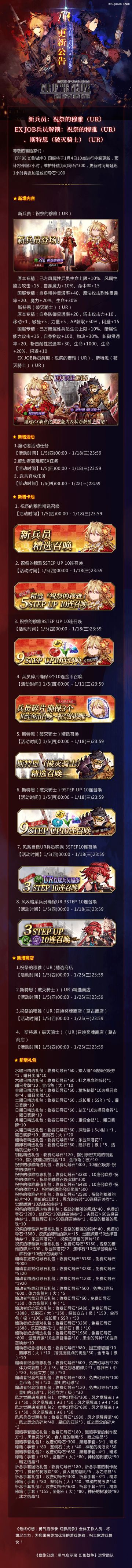 更新公告 丨FFⅣ联动开启!新兵员高贝扎(UR)登场!