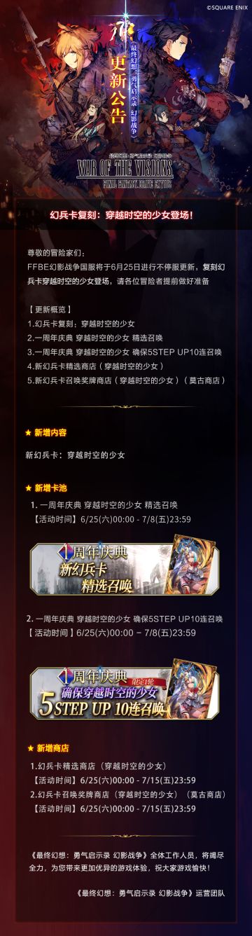 更新公告 丨 幻兵卡复刻:穿越时空的少女登场!!