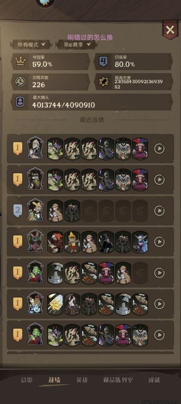 阁楼当前英雄梯度排行