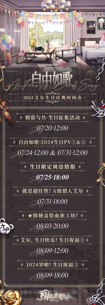 【月影别墅】自由如歌·2024艾尔生日庆典时间表