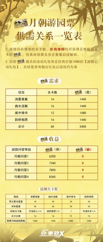 【月朝游园票】供需关系一览表