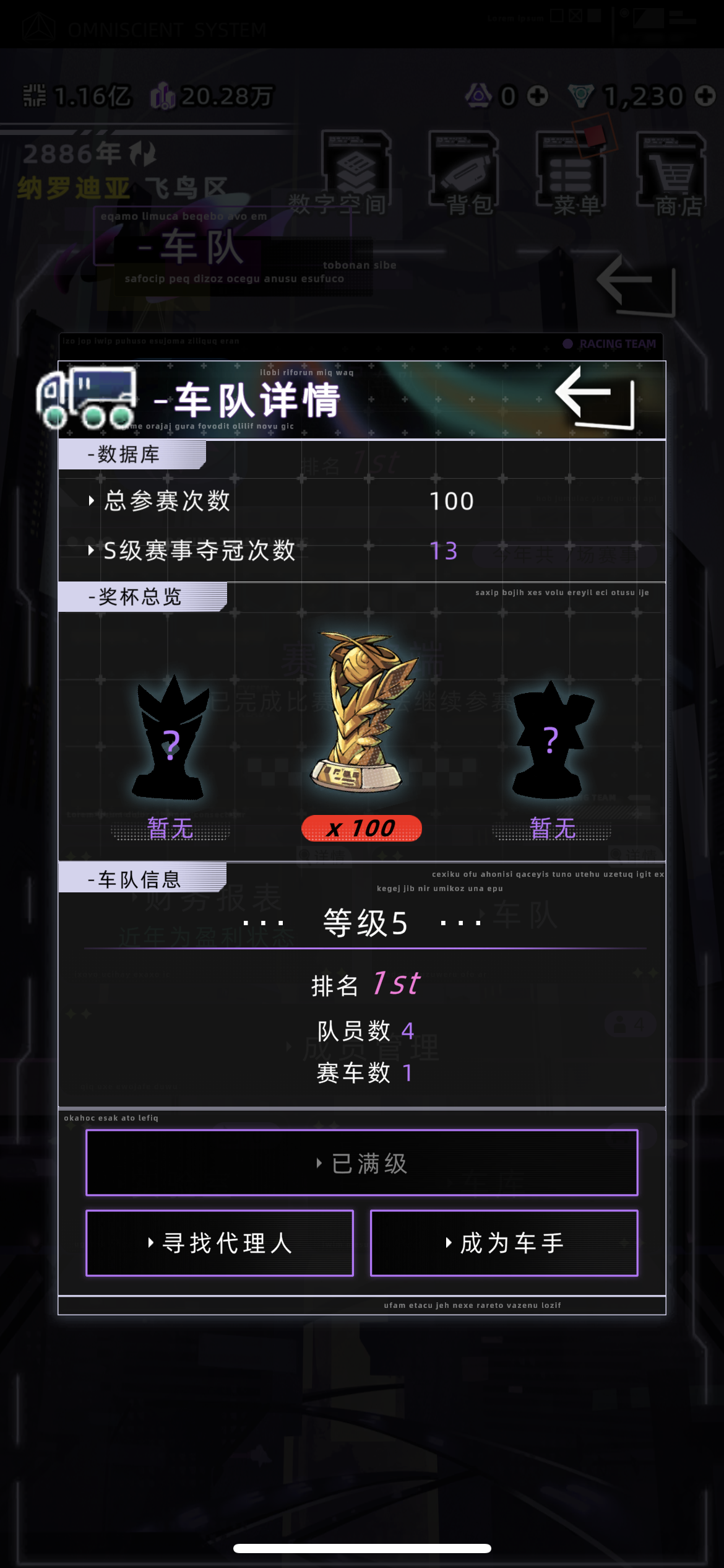车队赛车手特性