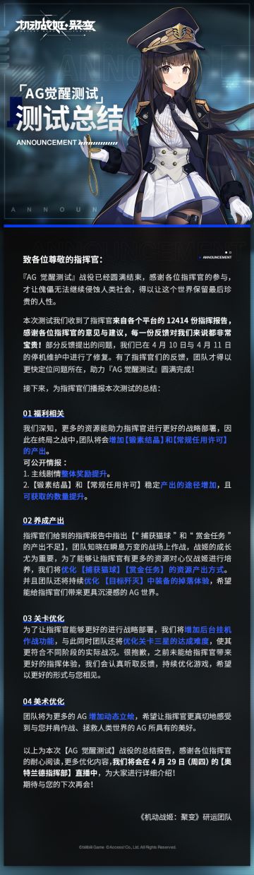『AG觉醒测试』结束公告