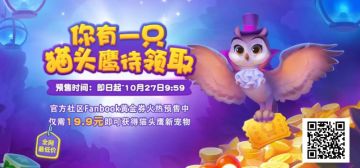 "text": "明天是什么日子,小主人还记得吗?\nbingo!10月27日花园新赛季来袭~\n可爱猫头鹰🦉🦉🦉即将上线!\n新赛季黄金券预售限时抢购仅需19.9元!今天是最后一天❗❗❗\n扫码即可购买,仅限安卓!!\n⭐购买后,在游戏内赛季开启后兑换使用哦(10月27日10:00)",