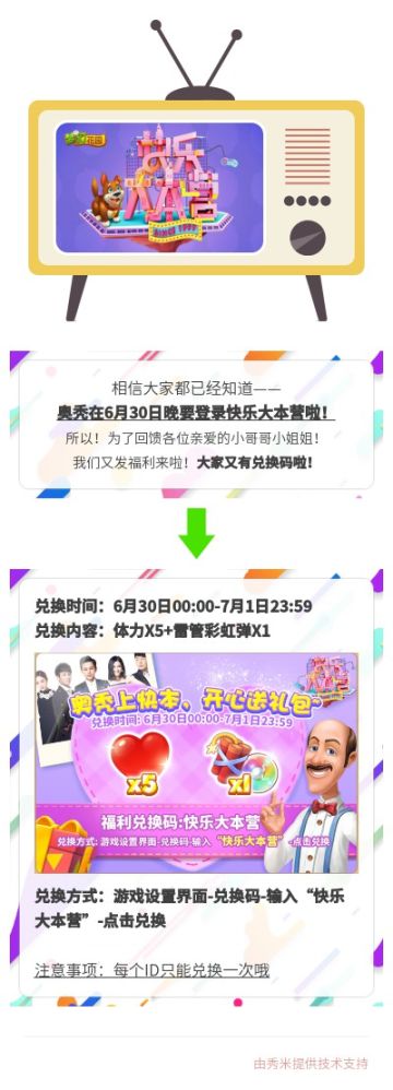 【福利】快乐大本营登录礼包,走过路过不要错过