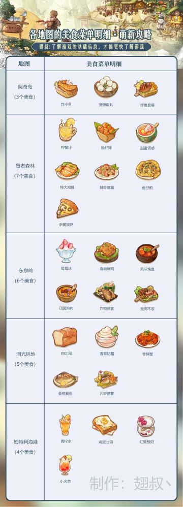 森之国度 —— 各地图美食菜单明细完整版