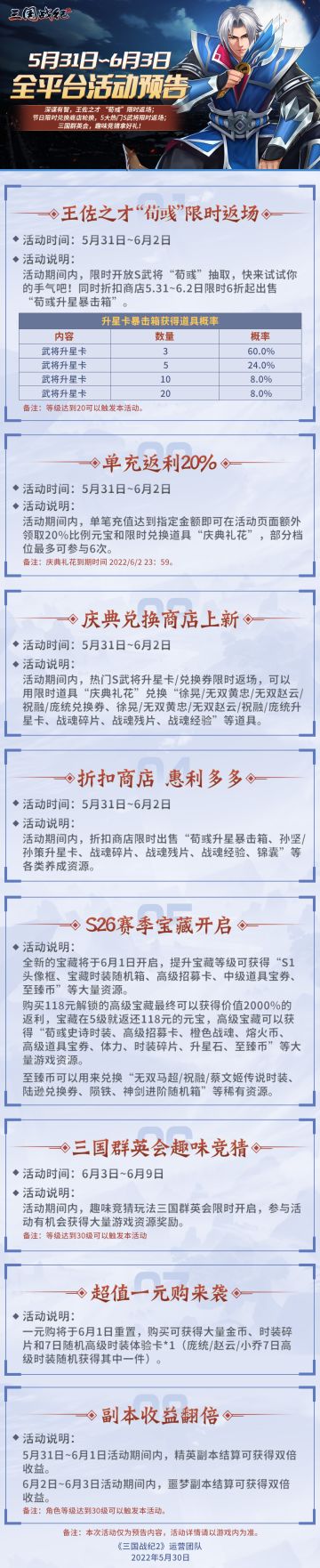 《三国战纪2》5月31日~6月3日全平台活动预告