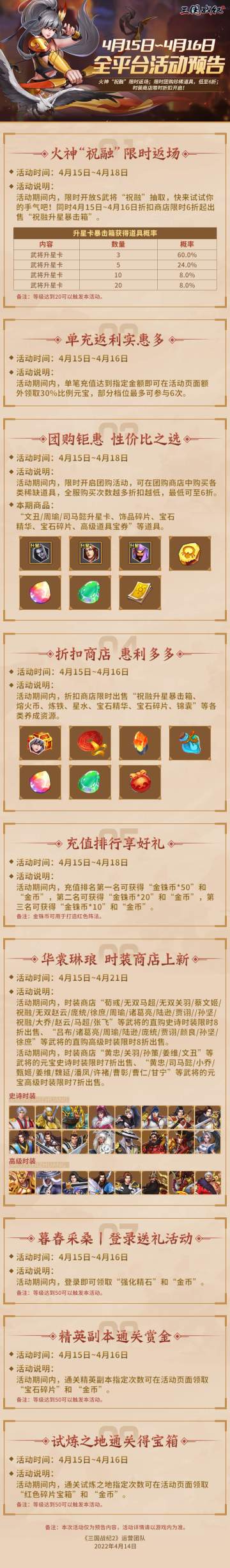 《三国战纪2》4月15日~4月16日全平台活动预告