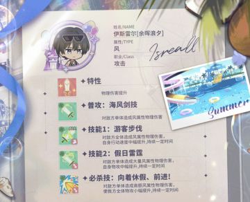 【泳装】新卡池推荐(上期) 照旧先放结论: 风伊斯雷尔物理大帝,缺物C抽。 风埃弥克法术神辅,缺法术奶抽。 ↑花钻抽的俩都很强 赠送的风路亚比较鸡肋。 ①伊斯雷尔(风) 他的数值面板没滑坡,数值非常牛,冷却也快,真的很强! 自身加中攻,自身加中提速,对单暴力输出手,纯纯的主C。唯一遗憾是小技能倍率很一般(不然就太不平衡了),基本思路是快速行动积累大招能量。 类比法术队的水维恩和犹因完全没问题,缺