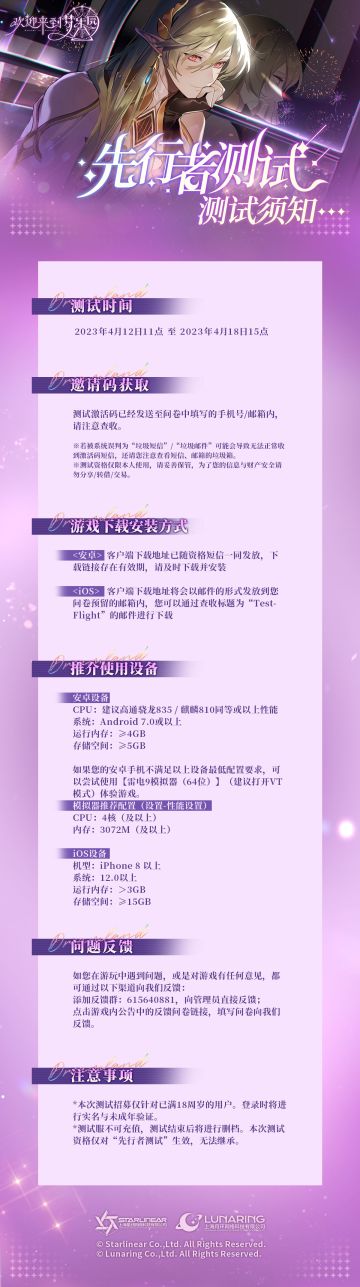乐园布告栏丨 “先行者测试”测试须知