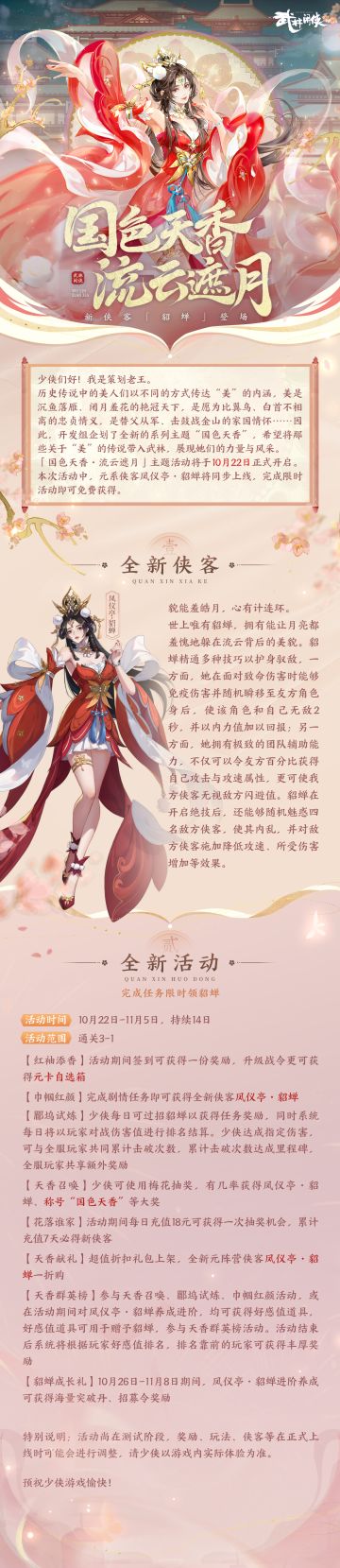 【版本前瞻】国色天香·流云遮月主题活动开启!貂蝉挽云羞明月