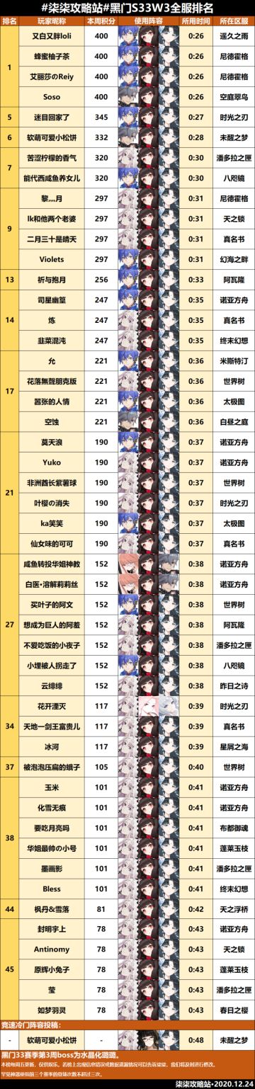 黑门试炼第三十三赛季第三周全服排行榜