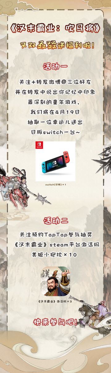 【周边福利】《汉末霸业:吹马将》关注+预约福利活动大派送!