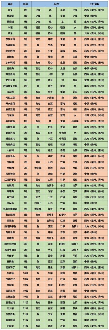 江湖悠悠 食谱攻略