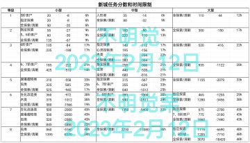 新城各等级物资奖励、分数和时间
