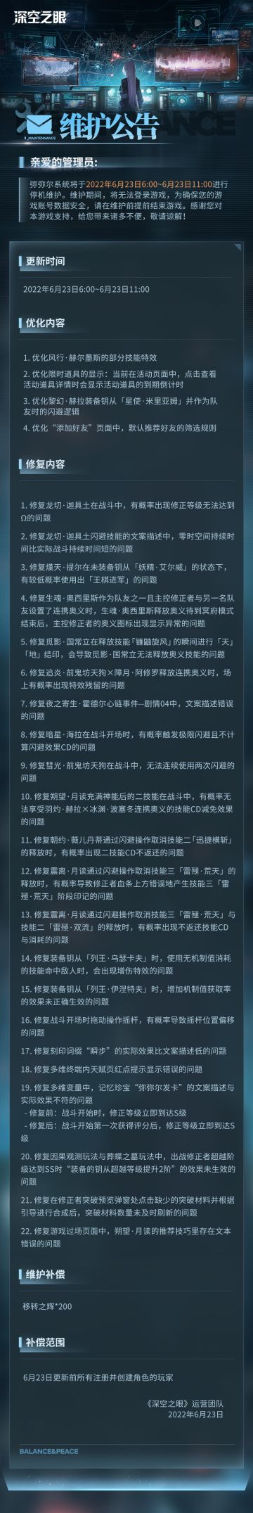 《深空之眼》6月23日停机维护更新公告