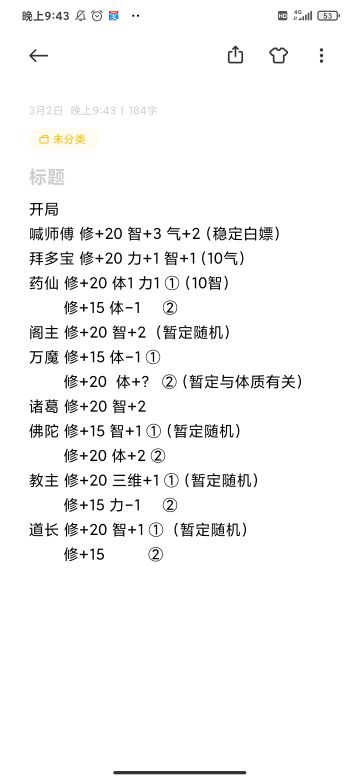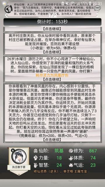{ "text": "1.无想的一刀:①进入前提,气运≥12,修为≥2500,体和智都至少>30,力>50(死亡率很高)\n②灵根有金,力≥60,智和体≥20。\n(②是由玩家“怒在胸中”提供)(大人,时代变了,已经不是稳拿了,死亡率中。)\n③灵根为双,三维≥55,运气≥12,目前成功率100%。(灵根为单,符合这个条件还选择的可能会没掉。)\n④修为≥2500,任意一属性>120,其他两维≥30,目前成功率100%。(单,杂)\n⑤力≥30,气运越接近30概率越高,欧皇の选择。\n(每次用双都达不到这个条件,如果达到可以试一下,不过我认为双最好用方案三。)\n\n\n2.跳崖:①直接跳:四维属性的和>185且气运必须>10(成功率>失败率)\n ②直接跳:体≥50,气运≥20(看个人运气吧,想测自己是不是欧皇的可以试一下。)\n ③直接跳:体≥50,智≥20,10<气运<20,越接近24成功率越大。\n ④计算距离,智慧≥145。\n(这么难达成的东西,干脆不要跳崖。)\n\n3.死亡笔记如何写自己的名字不会死亡且正面收益?(还不如直接搞别人)\n答:①智力或力量或运气>20且体质必须>15\n (特别注意,体质不能算到前面去!)\n ②仅一个属性≥20并且其他三个<15。(当那个属性为运气时,改为运气≥15并且他三个<15)\n 结果:气运+1,修为+15。\n\n4.如何救/杀凤凰?\n答:①杀,力量≥41(不推荐,杀了气运会减3,加的属性也一般。)\n ②救,体质>50且气运≥20。(有失败,有成功。)\n ③救,体质>60。(只要属性差不要太大,几乎都成功。)\n\n5.河神那\n答 :①20力且20智拿金剑。(有些死亡率)\n ②杂灵根,25力且体智双15且运气≥15全拿。\n ③任意两项属性(包括运气)≥20且最大属性与最小属性的差不能>10(最小属性包括运气)稳全拿。\n \n6.如何杀大蛇?\n答:①力量≥850且体质≥500且烧火杀蛇。\n ②力量≥900且体质≥500且智≥350进洞杀蛇\n ③智力≥?且体质≥500烧火杀蛇。\n\n7.天道法则\n答:①靠近,修为42500。\n ②扩大,修为45000 。\n ③不到42500选放弃,修为越接近42500几率越大。\n\n8.轮回宫殿\n答:选②(必死)\n选别的就无了,不过这也是最大收益。\n\n9.大哥哥\n答:换剑是最大收益。\n\n10.雷劫\n答:①第一道雷:1.气运越高,概率越大。(即使你选择的属性不满足4500,气运高的话,也有概率成功,目测是气运≥36就无视属性满不满足)\n 2.5200你选的属性≥你选的属性≥4500你选的属性,中等概率成功。(试了一下,成功率估计是40%~65%(这是比较综合的,欧皇随便)\n 3.你选的属性≥5200,概率大幅度提升,比5200越高,概率越大。(成功率好像不能达到100%,还是看个人运气或游戏气运≥36)\n\n \n②第二道雷,17.5万修为。\n\n③第三道雷:1.36运气。\n 2.当前面两道雷通过时,即使运气不足,也可以过,但不会解锁隐藏成就。\n\n11.比蒙如何杀?\n答:力量≥60\n\n12.你为什么觉得救凤凰需要修为?\n答:根据剧情,可以看出官方在提醒我们。\n灵力=修为,执念=智力,因为输入了三天三夜的灵力,所以体质自然也要好一下相同点,就可以得出结论。\n(现在来看,好像与修为无关了,就当娱乐了)\n\n\n14.烛龙如何杀/告诉不死\n答:①杀,力≥65,运气≥20。\n ②告,(有了大概的方向,但是想在测试几遍,在等等,马上就弄完了。)\n\n15.如何不被魔化大师兄杀死?\n答:①打,力≥3000且体≥3000。\n②话疗,智≥?体≥?(感谢力修大佬“守候着”)\n③被动防御,智≥?且体≥?\n④气运就是最牛的,气运≥36,不管选哪个都能活,直接无视属性判定条件。\n\n17.(消失的13)\n答:16和12还有13的发现,是因为我是剧情党和分析党,习惯拿剧情来发现规律,如果官方没有把剧情和判定联合起来,请轻骂。(后面四张图片,偏娱乐,可看可不看。)\n\n18.\n我已经退游十天啦!(3.30)攻略估计如果不是游戏重大更新,我是不会来更新了。希望在我走之后,这个游戏会出现更多优质攻略大佬,慢慢填补这个帖子的空缺吧。", "raw_text": "" }