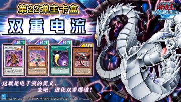 { "text": "第22弹 主卡盒《双重电流》及超专家预组《融合空间》将于1月14日上线 !\n\n本次的卡盒和预组收录了丸藤亮所使用的「电子龙」系列!武藤游戏所使用的「魔术少女」系列!强化了游城十代的「元素英雄」系列!\n收录了「六武众」的全新力量「影六武众」和「真六武众」,以及可以广泛应用于各个卡组的「宇宙旋风」!\n\n「真六武众-紫炎」\n可以在对方发动魔法·陷阱卡时将那个发动无效并破坏!\n并且场上的此卡被战斗·效果破坏的场合,可以将自己场上1只「六武众」怪兽破坏作为代替。\n「六武众」系列王牌怪兽!\n\n「巧克力魔术少女」\n此卡可以从手牌丢弃1只魔法师族怪兽发动,从卡组抽1张。\n且这张卡被选择作为攻击对象的场合,特殊召唤自己墓地此卡名以外的1只魔法师族怪兽。那之后,攻击对象转移为那只怪兽,攻击怪兽的攻击力变成一半!\n通过丢弃手牌的魔法师族怪兽进行抽牌,再在对手进攻之时将魔法师族怪兽特殊召唤回场!\n\n「宇宙旋风」\n支付1000生命值,便可除外场上的1张魔法·陷阱卡。\n不但可以为我方扫清阻碍,还可以通过支付生命值,达成某些角色技能的发动条件!\n\n「电子龙核」\n只要在场上·墓地存在,此卡便当作「电子龙」使用。\n此卡召唤成功的场合,从卡组将1张「电子」或「电子科技」魔法·陷阱卡加入手牌!\n只有对方场上有怪兽存在的场合,还可把墓地的此卡除外,从卡组将1只「电子龙」怪兽特殊召唤!\n\n「新宇融合」\n从自己的手牌·卡组·场上把融合怪兽所需的融合素材怪兽送入墓地,无视召唤条件从额外卡组特殊召唤1只需要2只融合素材,且包含「元素英雄 新宇侠」怪兽为融合素材的融合怪兽!\n当场上用「元素英雄 新宇侠」为融合素材的融合怪兽被战斗·效果破坏的场合或者因自身的效果回到额外卡组的场合,可以除外墓地的此卡作为代替。\n\n“这就是电子流的奥义,去吧,进化双重爆破!”", "raw_text": "" }