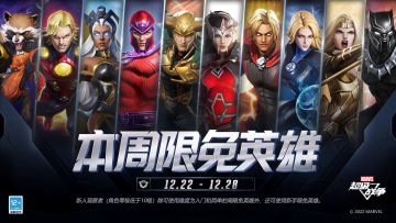 { "text": "#漫威超级战争# 本周限免英雄更新!\n2022.12.22(周四),5v5战场中本周可免费使用的英雄将更替为:宇宙术士亚当、蒂娜、万磁王、洛基、伊卡洛斯、黑豹、希芙女士、隐形女侠、暴风女、火箭浣熊。请各位观察者积极参与战斗。\n新人观察者(角色等级低于10级)除可使用难度为入门和简单的周限免英雄外,还可使用新手限免英雄。", "raw_text": "" }