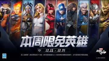 { "text": "#漫威超级战争# 本周限免英雄更新!\n2022.12.15(周四),5v5战场中本周可免费使用的英雄将更替为:索尔、美国队长、猩红女巫、霹雳火、冬兵、快银、艾玛·弗斯特、格鲁特、暴风女、火箭浣熊。请各位观察者积极参与战斗。\n新人观察者(角色等级低于10级)除可使用难度为入门和简单的周限免英雄外,还可使用新手限免英雄。", "raw_text": "" }