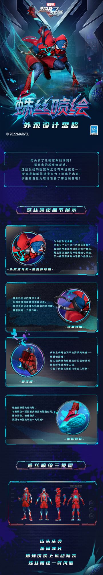 { "text": "#漫威超级战争一周年#\n☆蛛丝喷绘设计思路☆\n街头多了几幅惹眼的涂鸦!\n据目击的观察者反映,\n这些张扬的图案附近总有蛛丝痕迹……\n看来是蜘蛛侠摇身变为了涂鸦艺术家~\n快来看看他为喷绘准备了哪些装备吧!\n", "raw_text": "" }