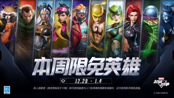 { "text": "#漫威超级战争# 本周限免英雄更新!\n2022.12.29(周四),5v5战场中本周可免费使用的英雄将更替为:铁拳、沙魔、百光花火、迷境魔、星爵、野兽、黑寡妇、北极星、暴风女、火箭浣熊。请各位观察者积极参与战斗。新人观察者(角色等级低于10级)除可使用难度为入门和简单的周限免英雄外,还可使用新手限免英雄。", "raw_text": "" }