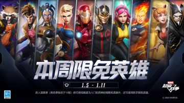 { "text": "#漫威超级战争# 本周限免英雄更新!\n2023.1.5(周四),5v5战场中本周可免费使用的英雄将更替为:亡刃黑鸦、松鼠女、钢铁侠、霹雳火、牌皇、黑骑士、惊奇队长、魔仙子、暴风女、火箭浣熊。请各位观察者积极参与战斗。\n新人观察者(角色等级低于10级)除可使用难度为入门和简单的周限免英雄外,还可使用新手限免英雄。", "raw_text": "" }