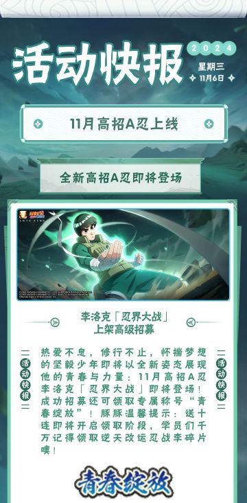 【本周公告】忍战李送十连,火影剧场版《忍者之路》活动即将返场