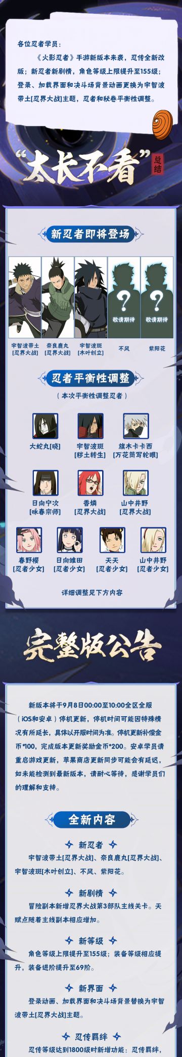 【大版本公告】9月8日新版本停机更新