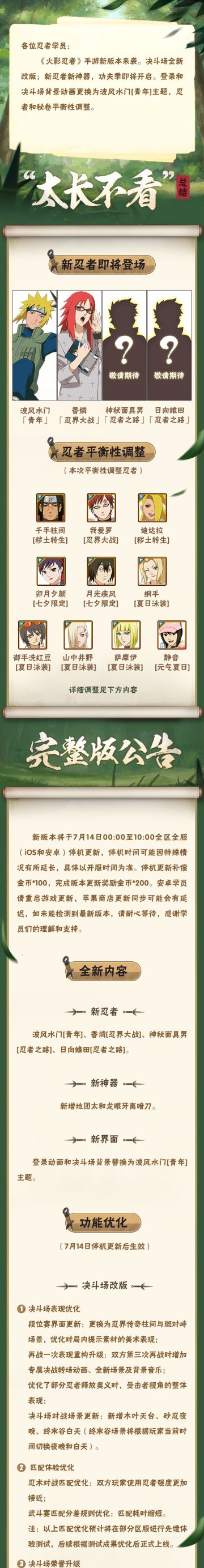 【大版本公告】7月14日新版本停机更新