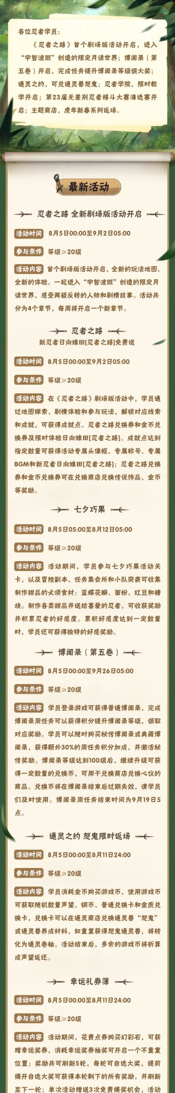 七月高招A正式确定,大版本更新超多活动来袭。