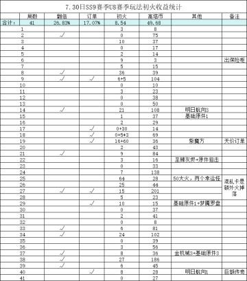 41次U8赛季玩法初火收益统计