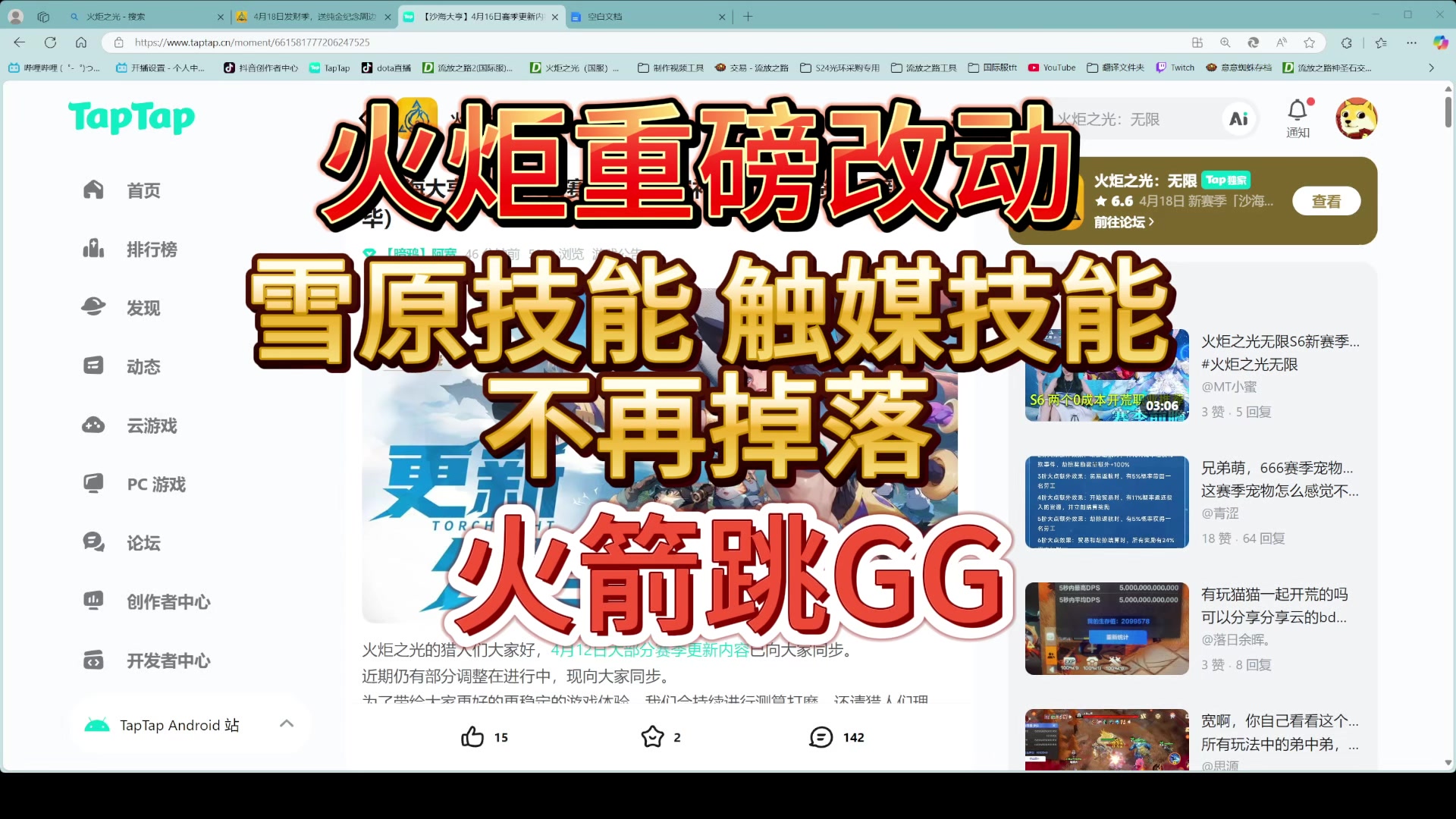 雪原技能不再掉落,迸发头8-0掉落,火箭跳GG,火炬之光改动