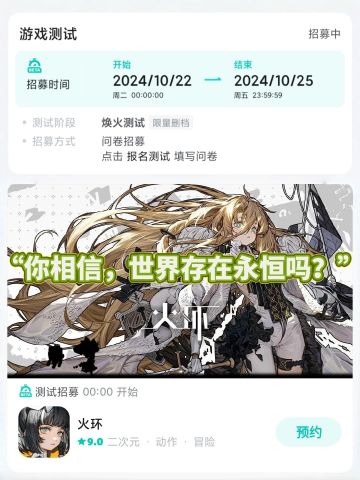 火环 12月25日获得版号 测试招募开启
