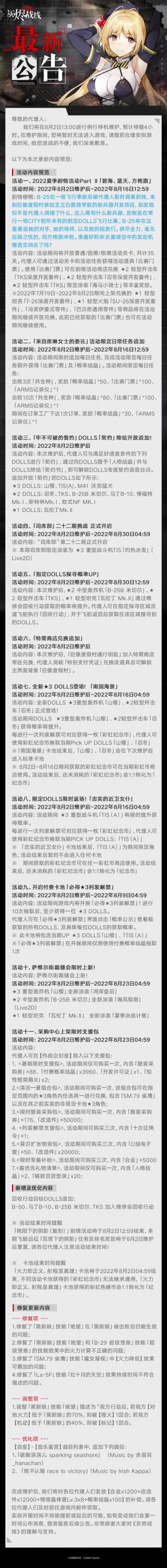 【灰烬战线】8月2日维护公告