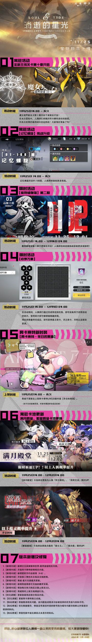 《灵魂潮汐》11月25日停机维护公告 阿卡赛特时装、主线第十章上线