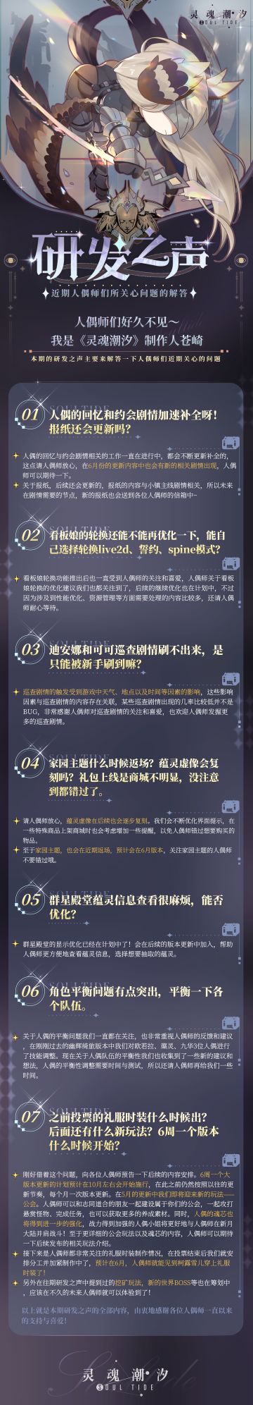 《灵魂潮汐》研发之声:近期人偶师们所关心问题的解答