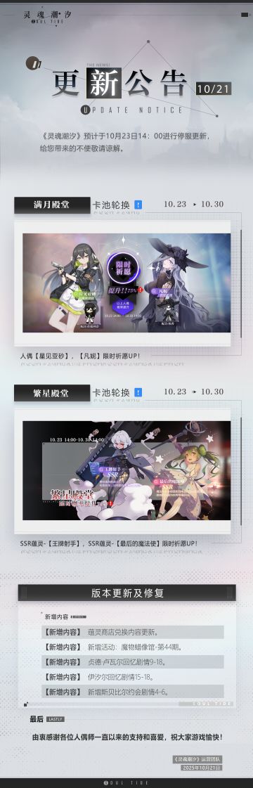 《灵魂潮汐》10月23日停机维护公告