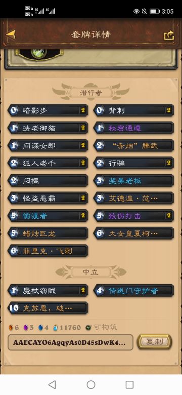 反复摩擦终于爬上了传说,分享一下自己的卡组:奇数瞎