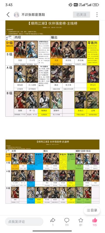 烟雨江湖强度榜