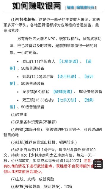 给各位少侠总结一些小细节以及赚银两小攻略