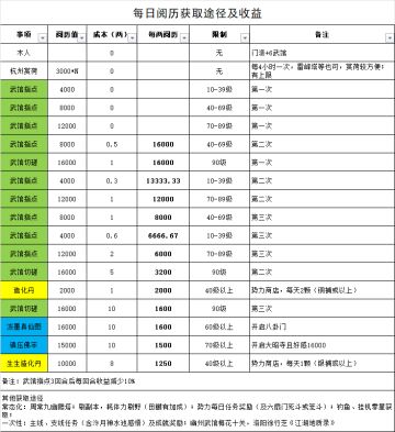 看到还有新人问阅历,发个之前自己整理的每日阅历表