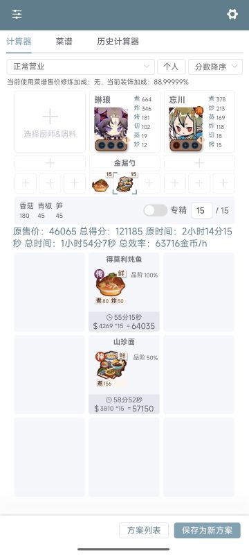 满修炼差值计算(全技法,全售价,菜谱上限)