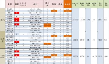 繁花/过家家/三周年 本次复刻菜谱数据-厨神向