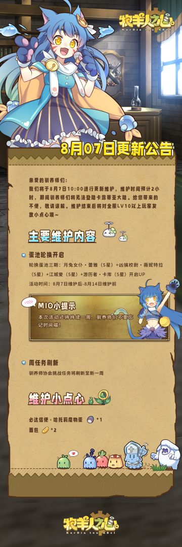 《牧羊人之心》x《因为太怕痛就全点防御力了2》二期联动版本内容 全新角色加入队伍,将会发生怎样的冒险故事? 活动将在9月26号开放,驯养师不要错过喵!