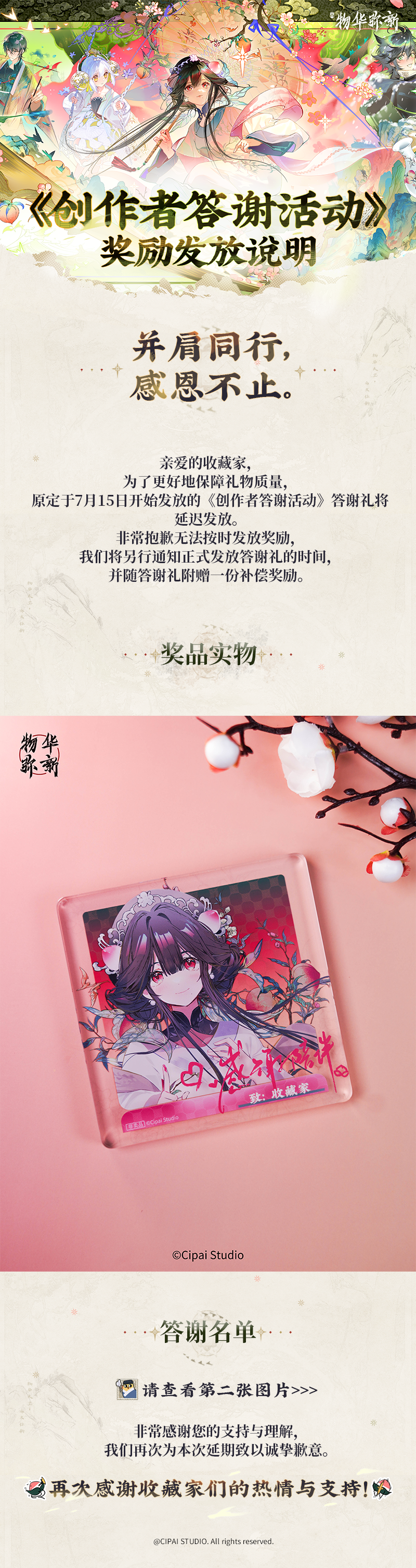 物华弥新丨《创作者答谢活动》奖励发放说明