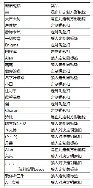 【恭喜中奖】狼人对决三测周边奖品获奖名单公布