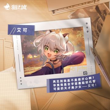 🐈新海旧忆:调查官,还记得与艾可的初见吗? 古灵精怪的她初次亮相也非同寻常,科研天才急速破解门禁闪亮登场! 总是摸鱼熬夜打游戏喝快乐水的她——STOP!回忆什么的先暂停一下,调查官,今天要玩什么双人游戏喵?(<ゝω・) 💦