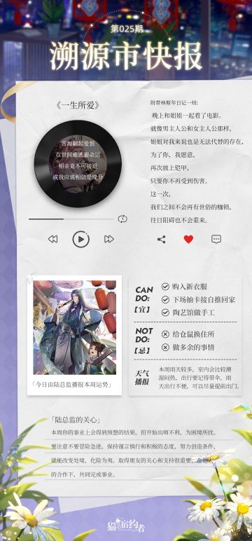 { "text": "今日报讯:\n今日由陆总监播报本周运势\n猫猫留声机今日推歌:一生所爱 附带日记一则\n\n今日话题:\n探长大人们可以推荐一下,有哪些会让你反复观看的电影嘛~\n欢迎在评论区留下你的看法~", "raw_text": "" }